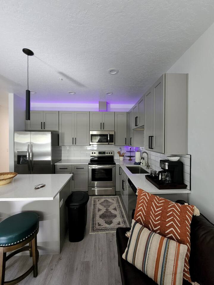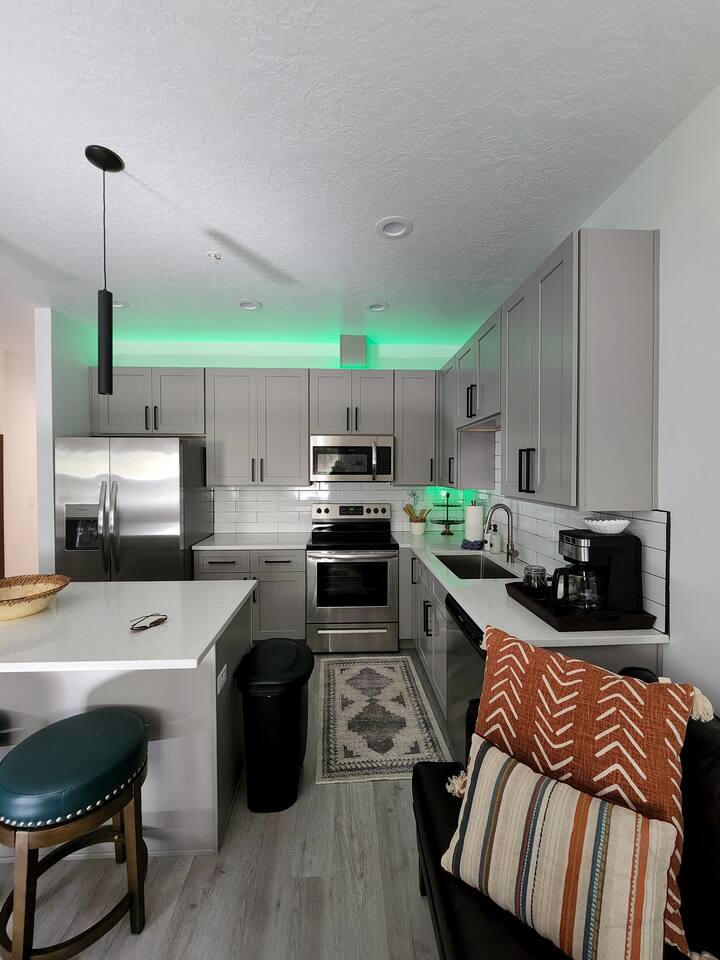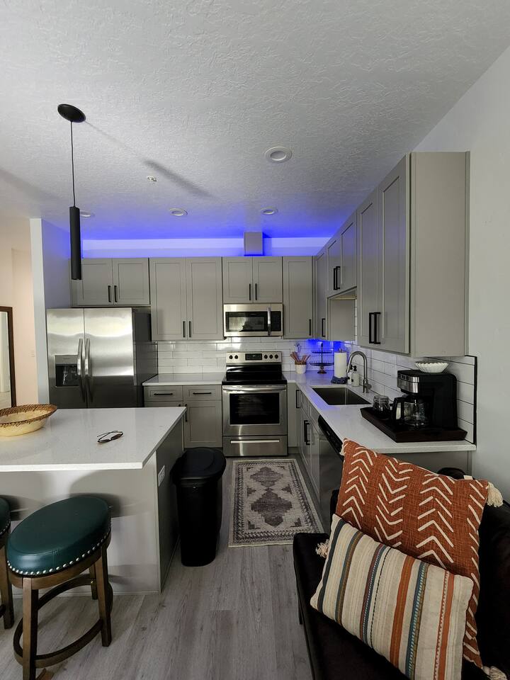 From the customizable mood lighting to the skulls, from furs to cacti--every space in this home is designed to inspire a sense of feeling grounded and provide a sense of rest and relaxation. Enjoy the evening next to a cozy little fire on the patio. If you enjoy cooking, a fully equipped kitchen awaits and the grill is ready to go for your use. We welcome pets but please note there is no grass or enclosed outdoor space for your pets at this property. Pets must be leashed at all times when out of the unit. The Boise River Greenbelt is a fantastic nearby trail to walk your leashed pets and we highly recommend that experience for all of our guests! For our midterm guests, please refer to our house rules for midterm considerations if booking this space for greater than 30 nights. Housekeeping available for an additional fee.