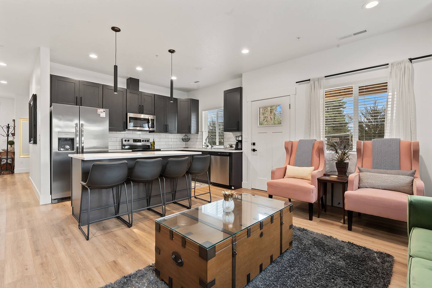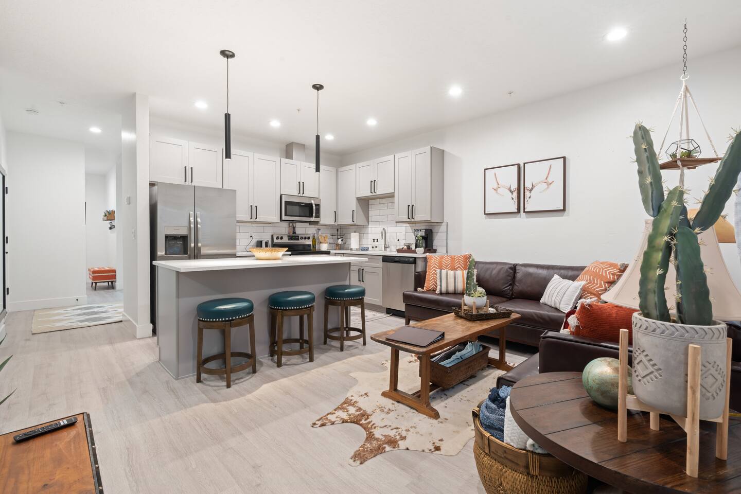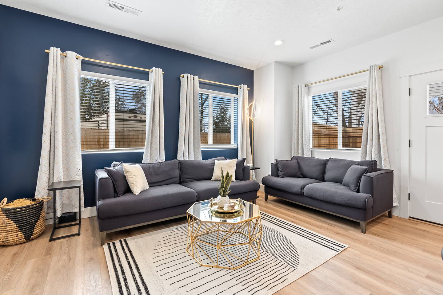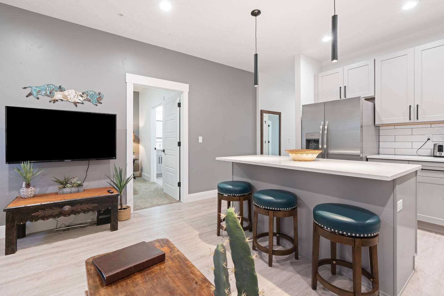 Offering accommodations for up to 21 with 10 bedrooms & 8 bathrooms with designated off street parking for up to 8 vehicles. Four stunning, themed units in one, this 2022 custom built fourplex vacation rental community offers all the modern amenities and comforts of home, including a work space, 24/7 gym access, private patios with gas grills, and private spa & firepit. Only 8 minutes to downtown Boise, 0.3 miles to the Boise River Greenbelt, and walking distance to local wineries.