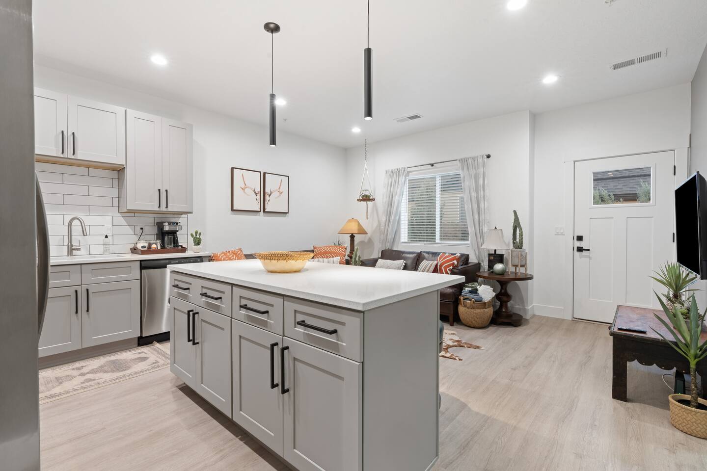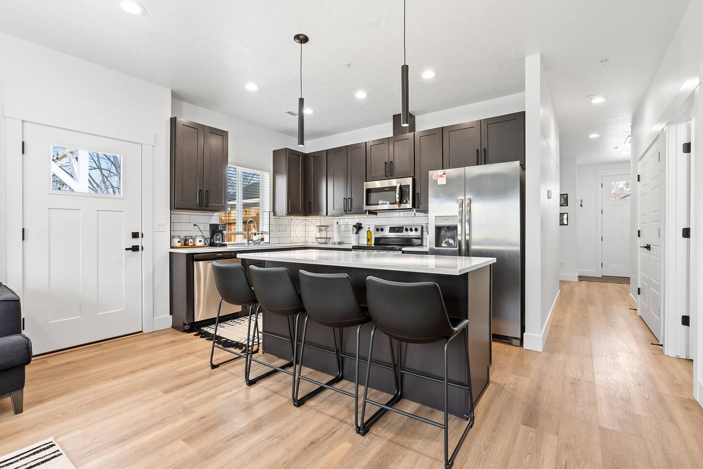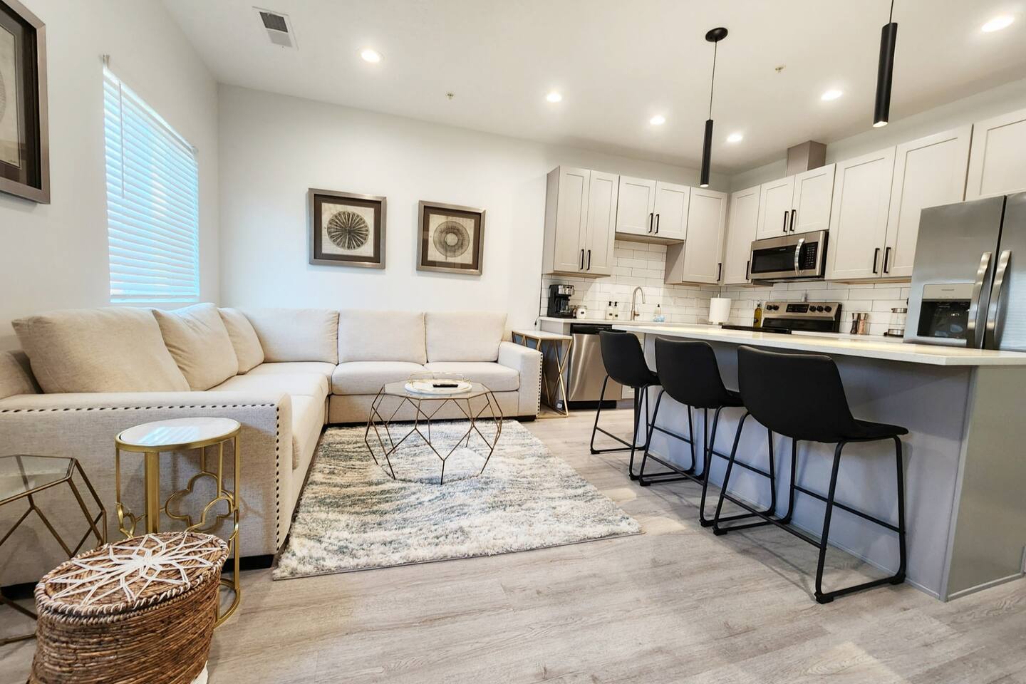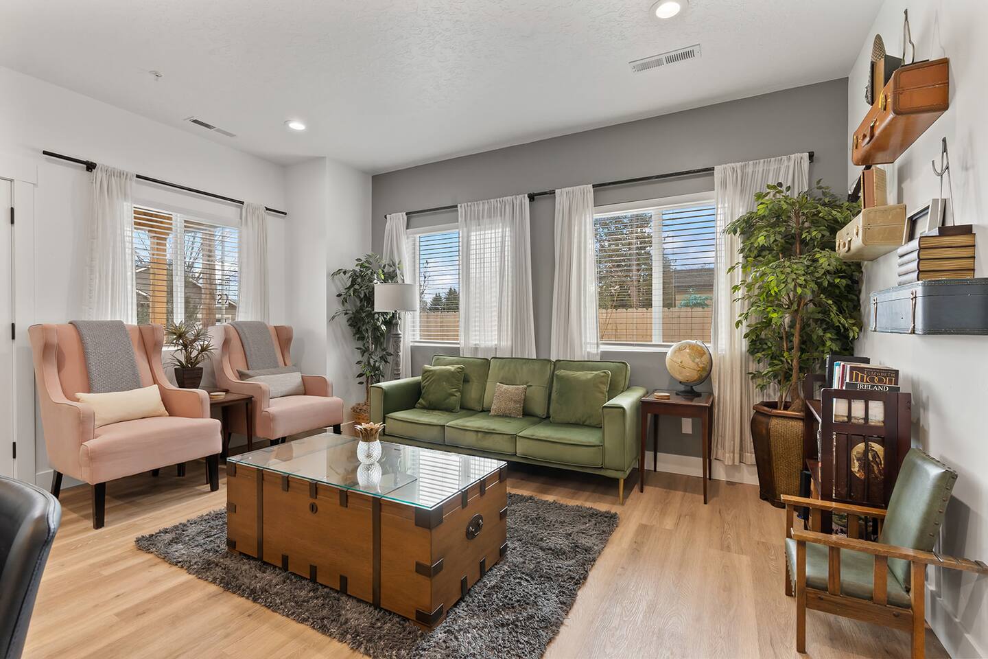 Offering accommodations for up to 21 with 10 bedrooms & 8 bathrooms with designated off street parking for up to 8 vehicles. Four stunning, themed units in one, this 2022 custom built fourplex vacation rental community offers all the modern amenities and comforts of home, including a work space, 24/7 gym access, private patios with gas grills, and private spa & firepit. Only 8 minutes to downtown Boise, 0.3 miles to the Boise River Greenbelt, and walking distance to local wineries.