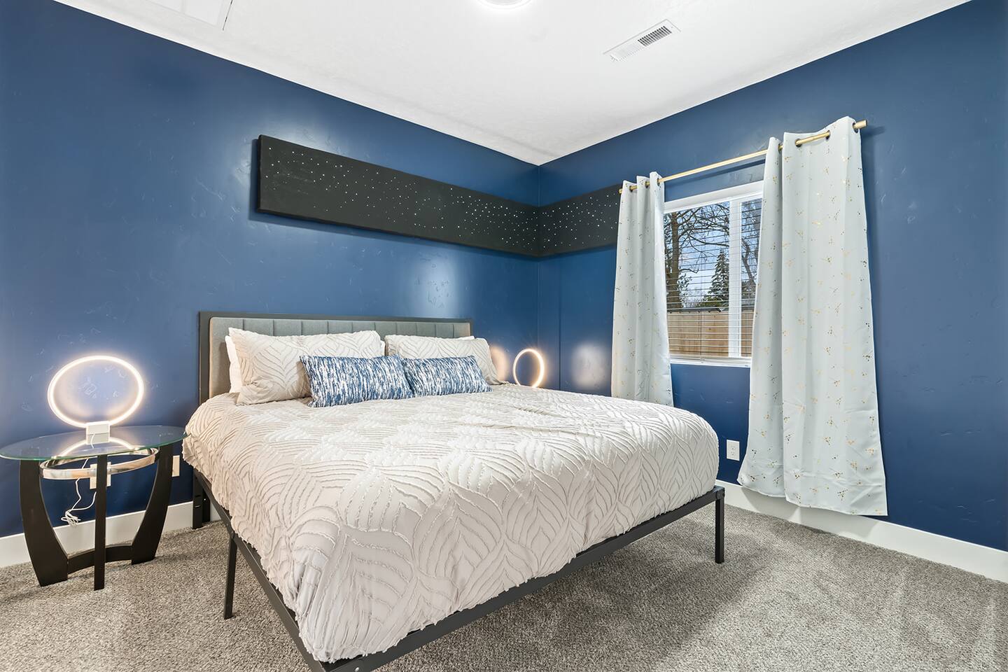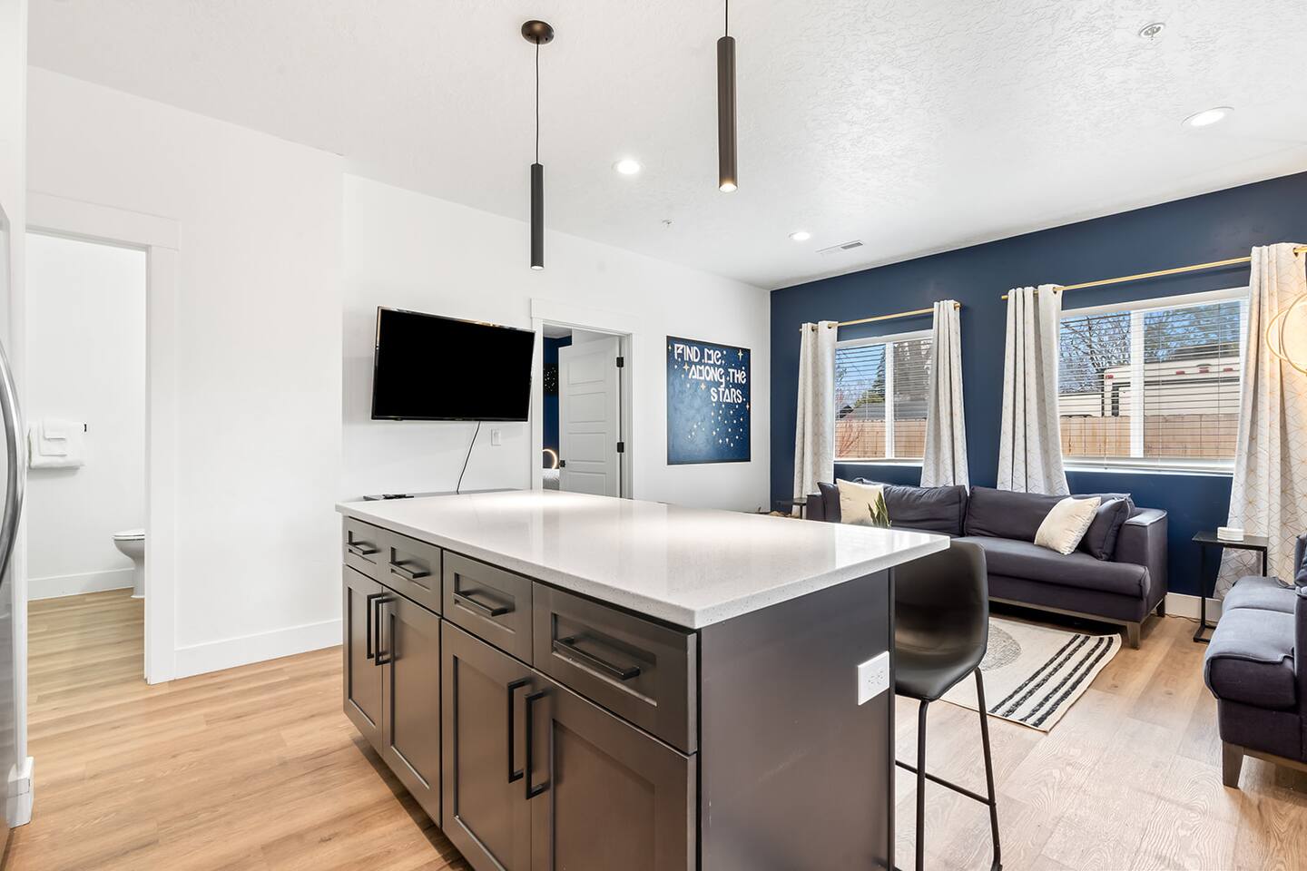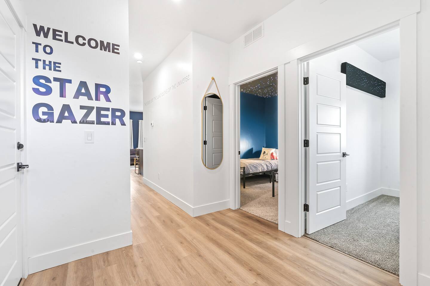 Perfect for traveling groups, this home offers privacy and plenty of space to spread out. Every space is themed and provided with all the amenities of home. Each unit is also available individually and offers a unique experience (please see JoAnna's profile for more details on individual listings): Explorer's Suite: Picnic basket to enjoy on the Boise River 3b/2b: 1 king, 1 queen, triple bunk Desert Oasis: Custom mood lighting in the living area, interactive mural, and a private chiminea (seasonal) 2b/2b: 2 queen Minimalist's Escape: Light, bright, simple and neat! 2b/2b: 2 queen The Stargazer: Fiber optic star feature in every bedroom, interactive mural 3b/2b: 1 king, 1 queen, 2 twin We offer the perfect space to relax outside with a 7 person spa and firepit.