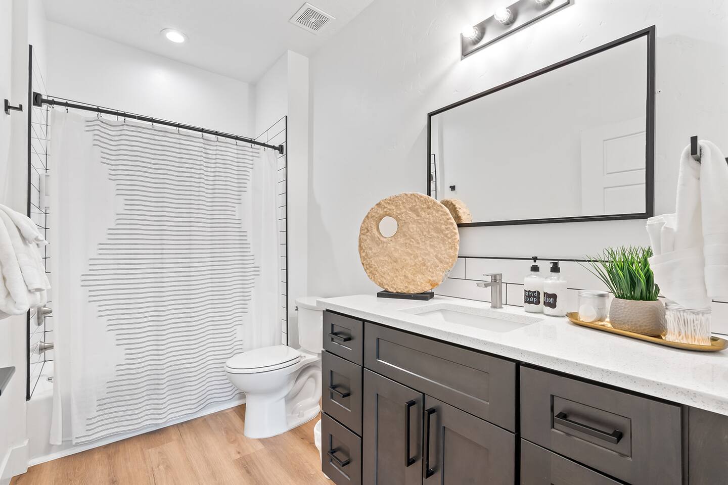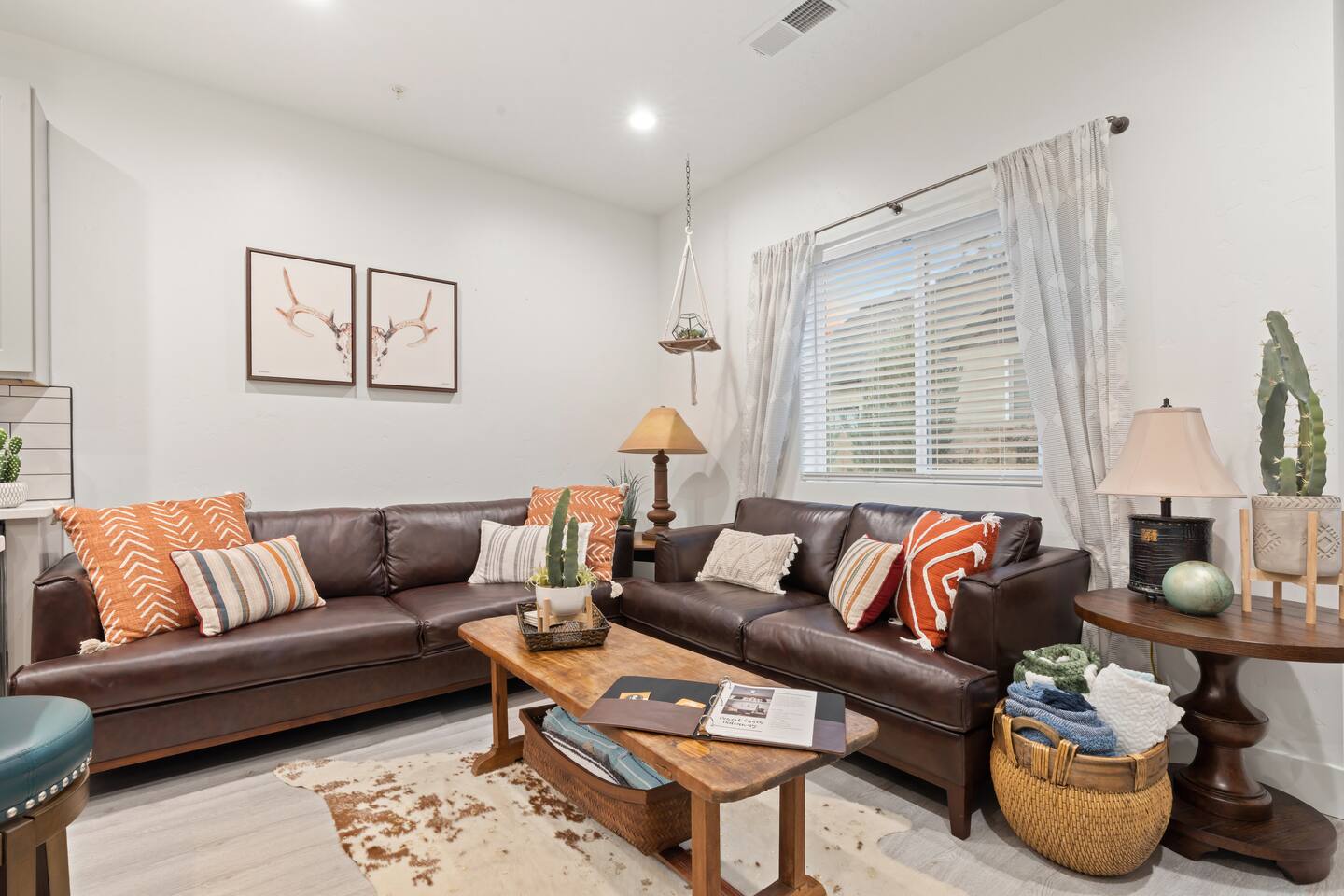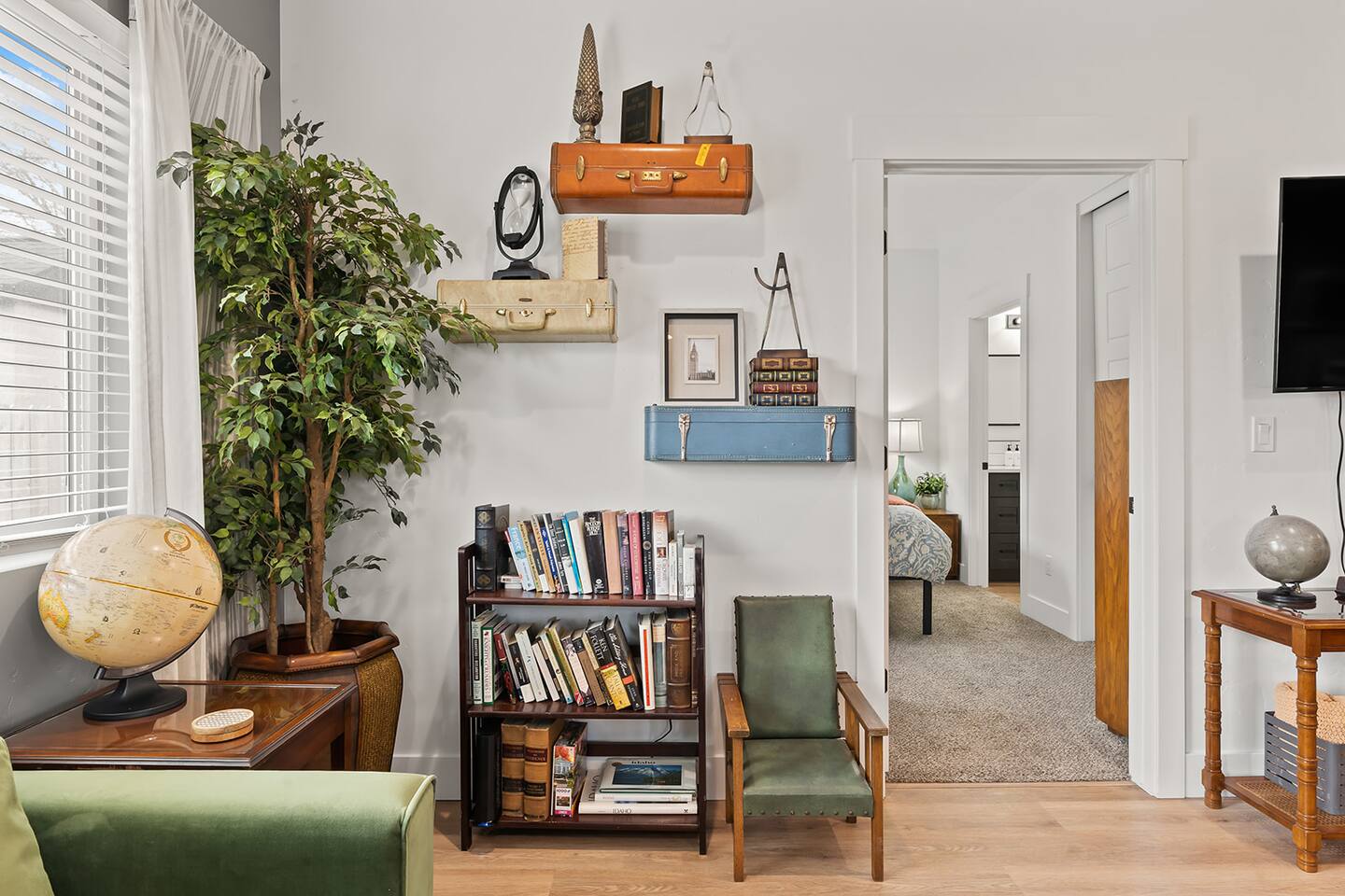 Perfect for traveling groups, this home offers privacy and plenty of space to spread out. Every space is themed and provided with all the amenities of home. Each unit is also available individually and offers a unique experience (please see JoAnna's profile for more details on individual listings): Explorer's Suite: Picnic basket to enjoy on the Boise River 3b/2b: 1 king, 1 queen, triple bunk Desert Oasis: Custom mood lighting in the living area, interactive mural, and a private chiminea (seasonal) 2b/2b: 2 queen Minimalist's Escape: Light, bright, simple and neat! 2b/2b: 2 queen The Stargazer: Fiber optic star feature in every bedroom, interactive mural 3b/2b: 1 king, 1 queen, 2 twin We offer the perfect space to relax outside with a 7 person spa and firepit.