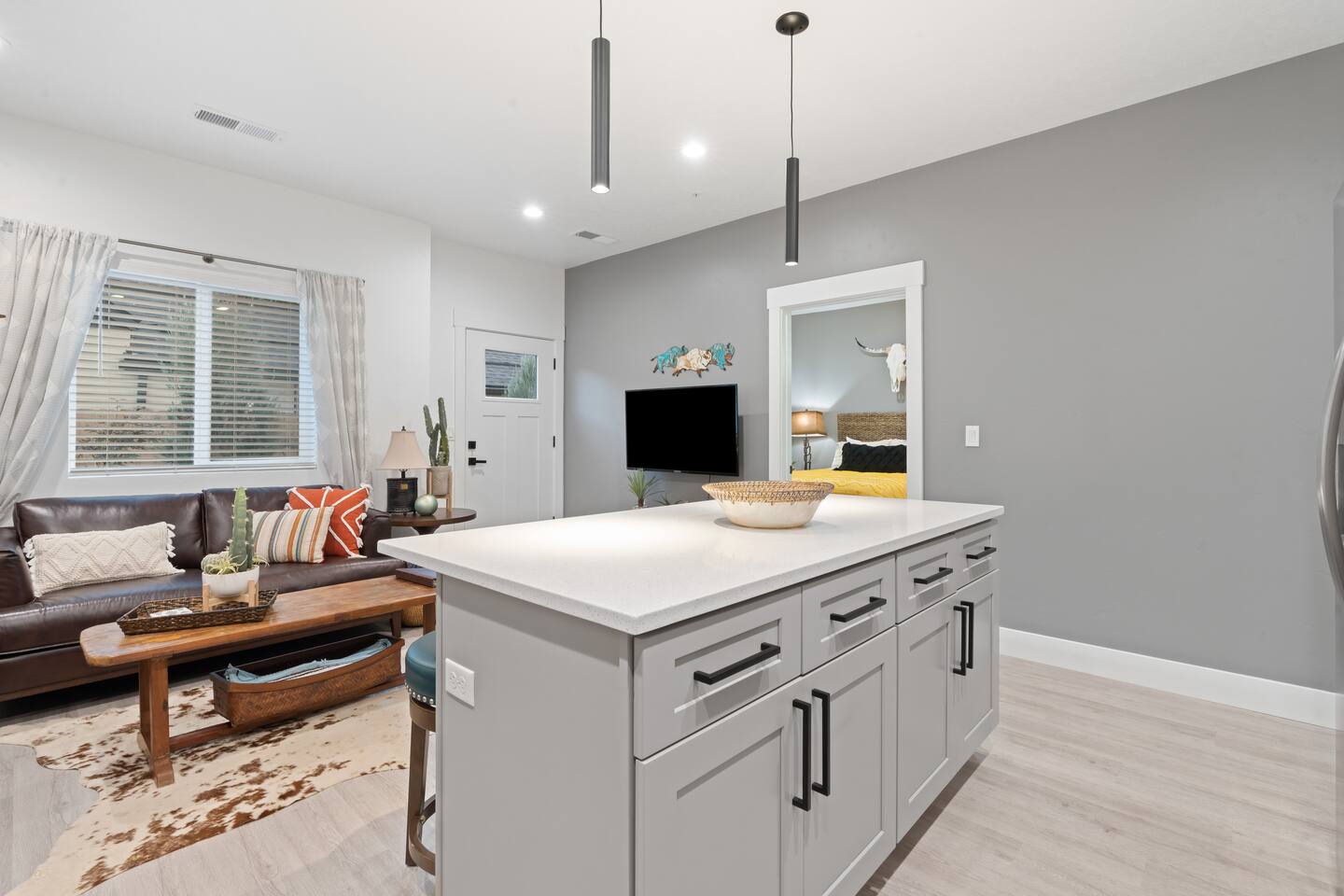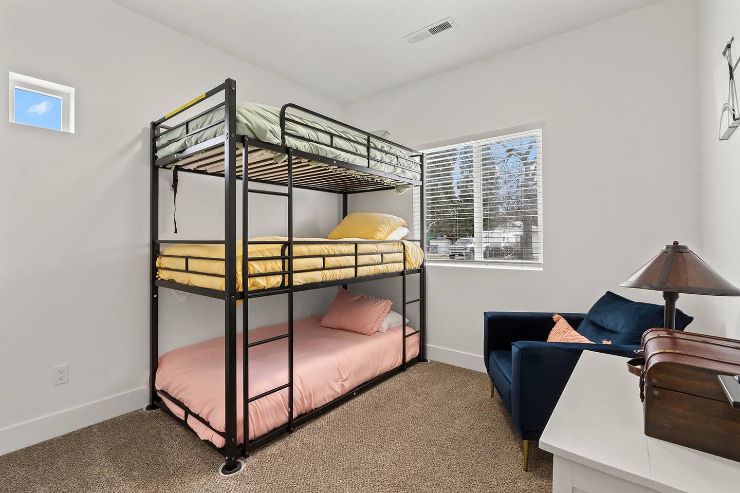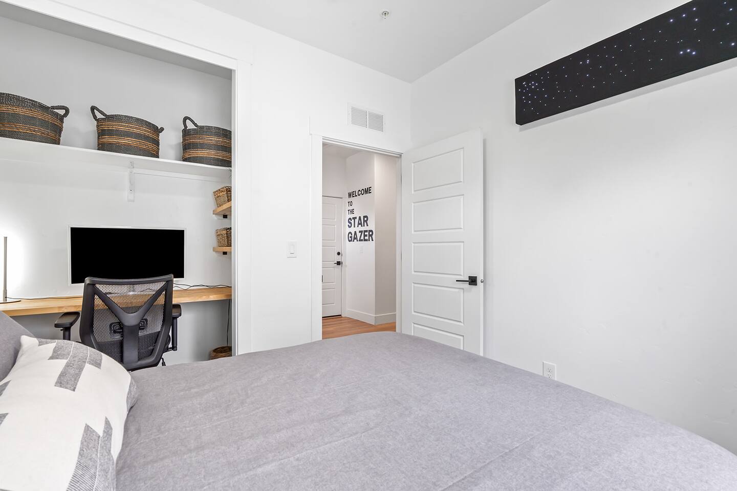 This property includes four separate kitchens and living areas. If traveling with children, an adult must supervise children directly while on the property. Breakdown of units: Explorers Suite 3b/2b Master: King Second: Queen Third: Triple bunk (150lb max on top bunk) Desert Oasis 2b/2b Master: Queen Second: Queen Minimalist's Escape 2b/2b Master: Queen Second: Queen The Stargazer 2b/2b Master: King Second: 2 Twins Third: Queen (with workspace)